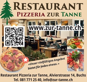 Restaurant Pizzeria zur Tanne Alvierstrasse 14 | 9470 Buchs Tel. 081 771 25 40 | www.zur-tanne.ch Mehr Infos
