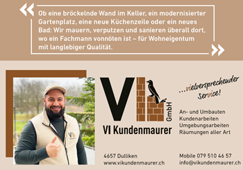 VI Kundenmaurer GmbH Hausmatt 15 | 4657 Dulliken Tel. 079 510 46 57 | www.vikundenmaurer.ch Mehr Infos