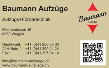 Baumann-Aufzüge Weiherstrasse 16 | 6353 Weggis Tel. 041 260 03 03 | www.baumann-aufzuege.ch Mehr Infos