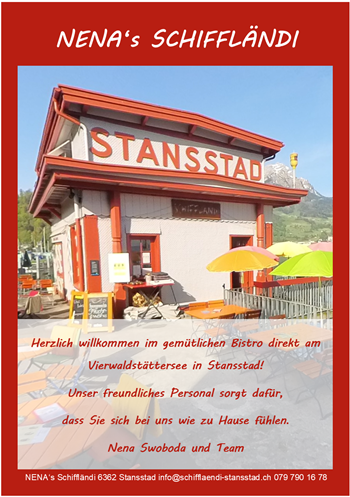Nena's Schiffländi Dorfplatz 3 | 6362 Stansstad Tel. 079 790 16 78 | www.schifflaendi-stansstad.ch Mehr Infos
