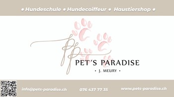 Pet's Paradise, Inhaberin Meury Kreuzstrasse 37 | 4227 Büsserach Tel. 076 437 77 35 | www.pets-paradise.ch Mehr Infos