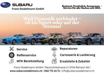 Franz Stadelmann GmbH Neumühlestrasse 2 | 5734 Reinach Tel. 062 771 14 71 | www.subarustadelmann.ch Mehr Infos