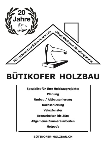 Bütikofer Holzbau GmbH Eichhofstrasse 1a | 8412 Hünikon (Neftenbach) Tel. 079 706 29 23 | www.buetikofer-holzbau.ch Mehr Infos